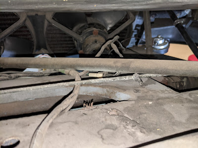 I recently dove into one project on the DeLorean (replacing the rubber coolant hoses with silicone hoses) that created a snowball of projects under the guise of "while I'm in there." I'll cover the coolant hose replacement in another post. While I was in the process of replacing the hoses, I noticed several areas around the gas tank where there was some rust poking through the epoxy coating on the frame. While I was in there, I knew that the only way to correctly fix the issue was to drop the gas tank out of the car so I could access the parts of the frame that needed to be addressed.
